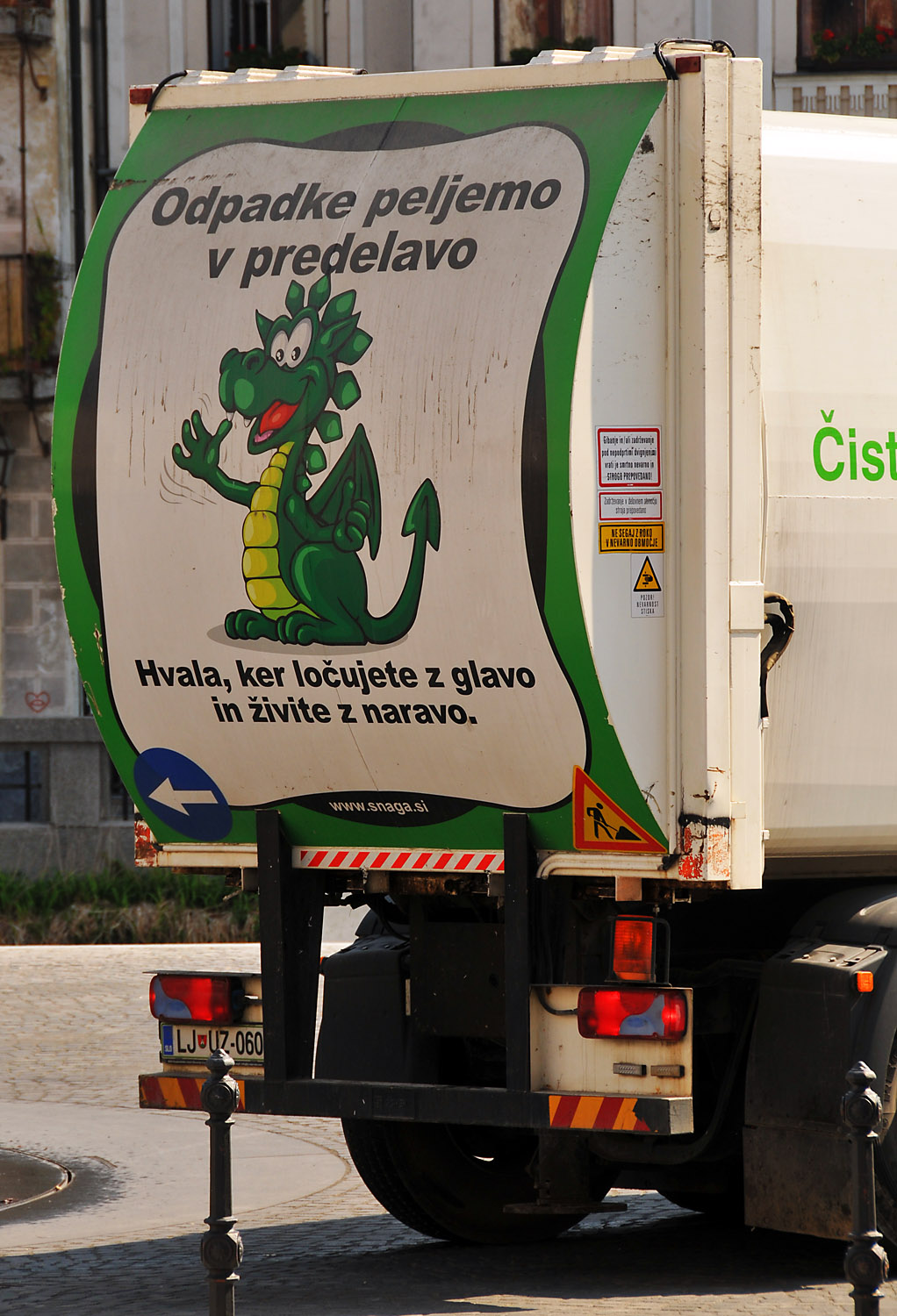 Outside Lily gave me instructions and we set off. As we made our way back into the old town she began to tell me about some of the history of the town during the Reformation, woven in with some of the local myths and folklore. She was jokingly relating a popular local myth that the country was plagued by dragons that routinely burnt crops and ravaged virgins, when I saw a dust cart in the distance with a dragon on the back.